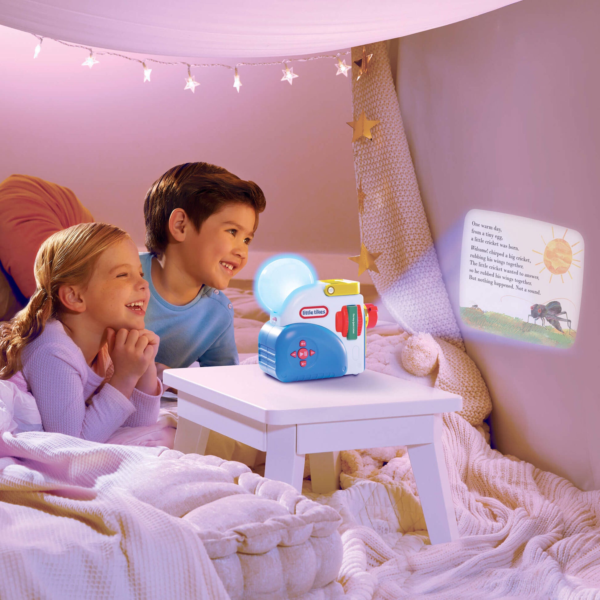 Designed to develop early reading skills, the Story Dream Machine projects words and images onto the wall, allowing children to follow along with the narrator while enjoying vibrant visuals and delightful sound effects.