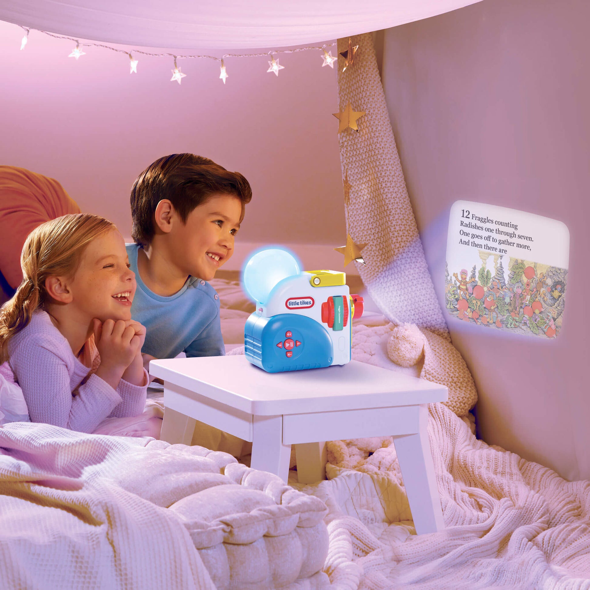 Designed to help develop early reading skills, the Story Dream Machine projects words and images onto the wall, allowing children to follow along with the narrator while enjoying vibrant visuals and playful sound effects.